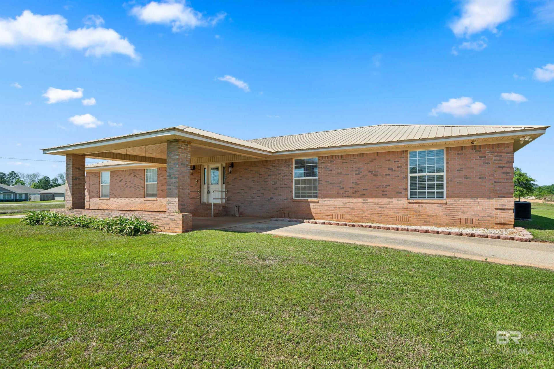 Located in a rural setting in Foley, 17635 Charolais Rd offers peaceful surroundings, while still being in close proximity to Hwy 98 and less than 10 minutes to Foley and Magnolia Springs. You'll enjoy the best of both worlds with a country feel while still being a short drive to shopping, dining, entertainment, and the beautiful white sand beaches of the Gulf Coast. This 4-bedroom, 3-bathroom brick home offers 2,753 square feet with multiple living spaces, including a formal dining room and a large bonus room that could easily serve as a second living area, den, office, or playroom. Tile flooring runs through the main living areas for easy maintenance. The kitchen features a tile backsplash, plenty of cabinet and counter space, and a breakfast bar with seating that opens into a spacious great room. The primary suite includes an ensuite bathroom with a double vanity, walk-in closet, walk-in shower, and direct access to the expansive glassed-in back porch. Three additional bedrooms and two additional bathrooms provide plenty of space for family or guests, and a spacious utility room with a storage closet adds extra convenience. Outside, the home features a durable metal roof, a covered two-car side-entry carport, and a circular driveway with a covered front entry for easy access. This home offers a great foundation for you to add your personal touch and make it your own. Buyer to verify all information during due diligence.
